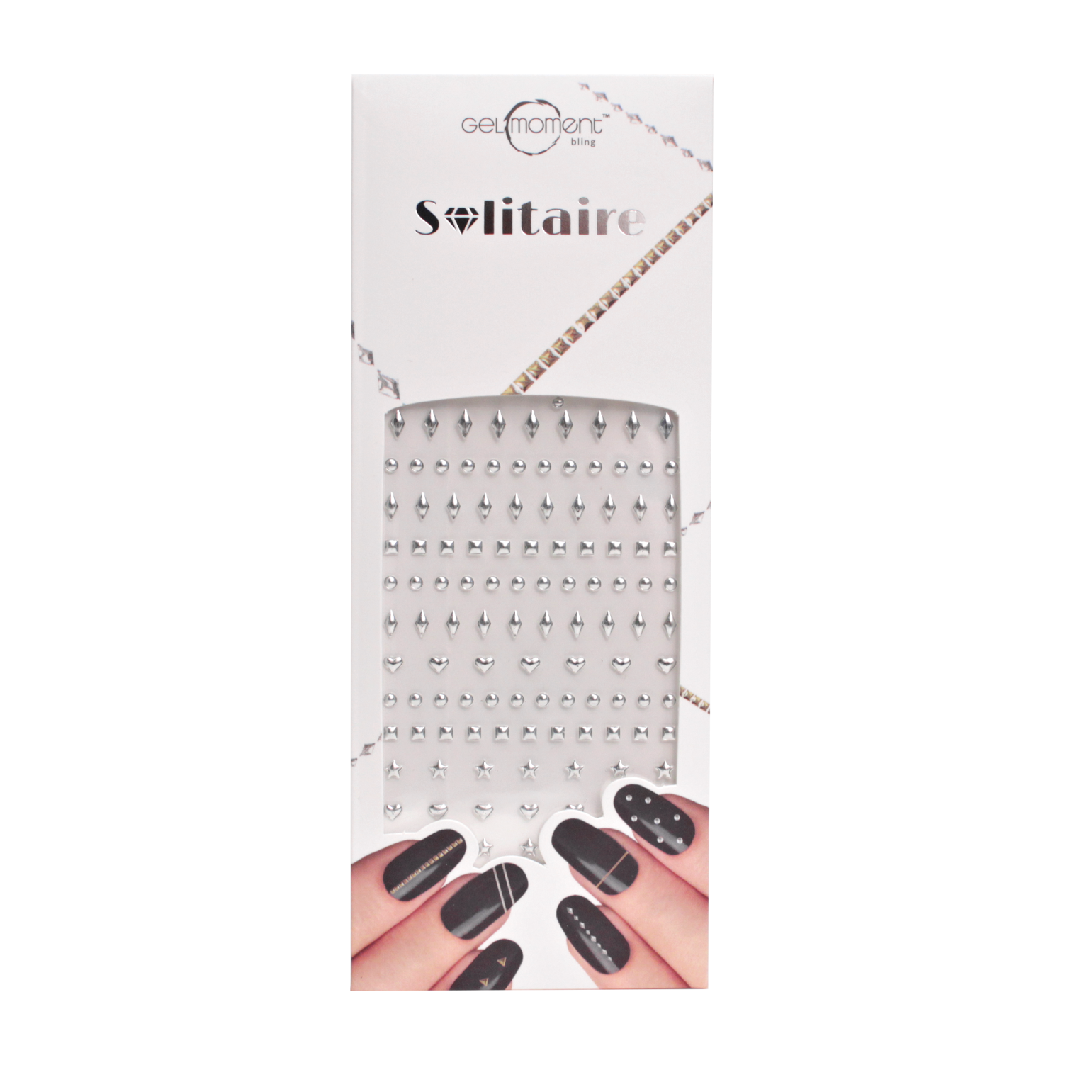 Add some edge to your nail art with these adhesive silver coloured nail studs - the perfect bling for a luxurious lifestyle.